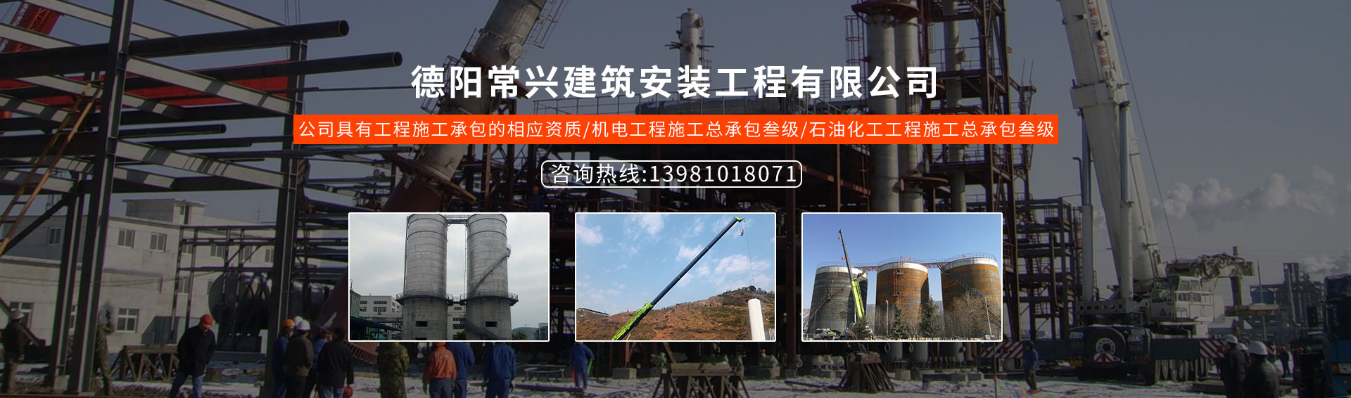 德陽常興建筑安裝工程有限公司,于2014年9月在德陽市工商行政管理局注冊成立。公司位于成渝經濟區重要區域中心城市,中國重大技術裝備制造業基地和全國三大動力設備制造基地之一的德陽。公司現有工程師和技術人員60余名,員工40余人經營范圍主要有:建筑安裝工程施工,化工石油工程施工,機電工程施工,市政工程施工,房屋建筑工程施工,消防設施工程施工,鋼結構工程施工,防腐保溫工程施工,電子工程施工,壓力管道安裝工程施工,壓力容器安裝工程施工,環保工程施工,防雷接地工程施工,中藥提取裝置安裝工程施工,化學合成藥裝置安裝工程施工,自動化控制系統(DCS系統和PLC系統)安裝及調試,銷售:儀表、閥門、建筑五金、機電設備、建筑材料、金屬型材、金屬板材。公司具有上述工程施工承包的相應資質:機電工程施工總承包叁級、石油化工工程施工總承包叁級等,并且全體工作人員上下一心、愛崗敬業、紀律嚴明、苦練內功、技術精湛、內營外拓、信守合同,從而形成了良好的企業美譽度,加大了市場份額,從公司的遠景到戰略定位、從公司企業文化營造到人才引進和培養均實現了長足的進步,公司經營走上了良性發展的軌道,經營業績不斷攀升,創造了眾多優良工程。